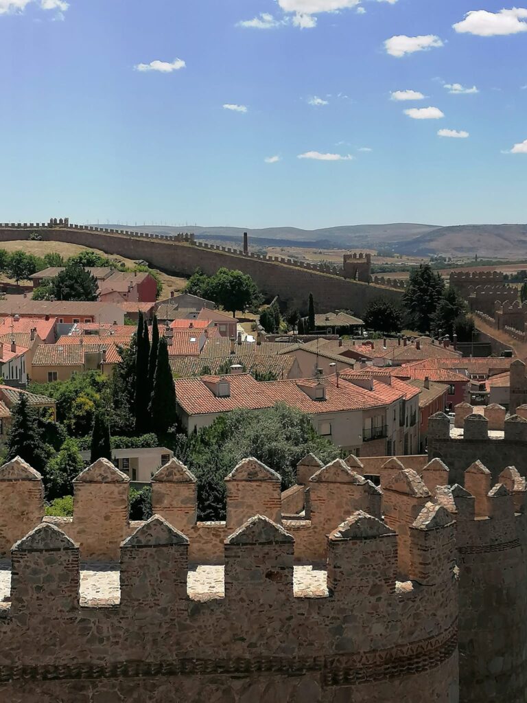 V Avilli so na več kot 1100 metrih višine pod največjo znamenitostjo mesta, enim najbolj ohranjenih srednjeveških evropskih obzidij s 88 stolpi, za avtodomarje pripravili prostoren PZA z vso oskrbo. Mi smo nameravali obiskati samo obzidje in čimprej odbrzeti naprej, zato smo izbrali parkirišče ob cesti, še nekoliko bliže obzidju. Obzidje izvira iz 11. stoletja in je dolgo dva kilometra. Polovico ga lahko prehodite in se razgledujete po notranjem in zunanjem delu Aville. Nekaj fotografij smo naredili tudi na poti v Avillo iz Segovie, a bi zanje najbrž potrebovali boljši fotoaparat. Veliko zgradb znotraj in zunaj obzidja je povezanih s sveto Terezijo Avilsko, ki je ustanovila svoj red Bosonogih Karmeličank. Rodila se je znotraj obzidja, pozneje pa je (ko ni potovala po Španiji in ustanavljala novih skupnosti Bosonogih Karmeličank), živela v samostanu, ki je izven obzidja.